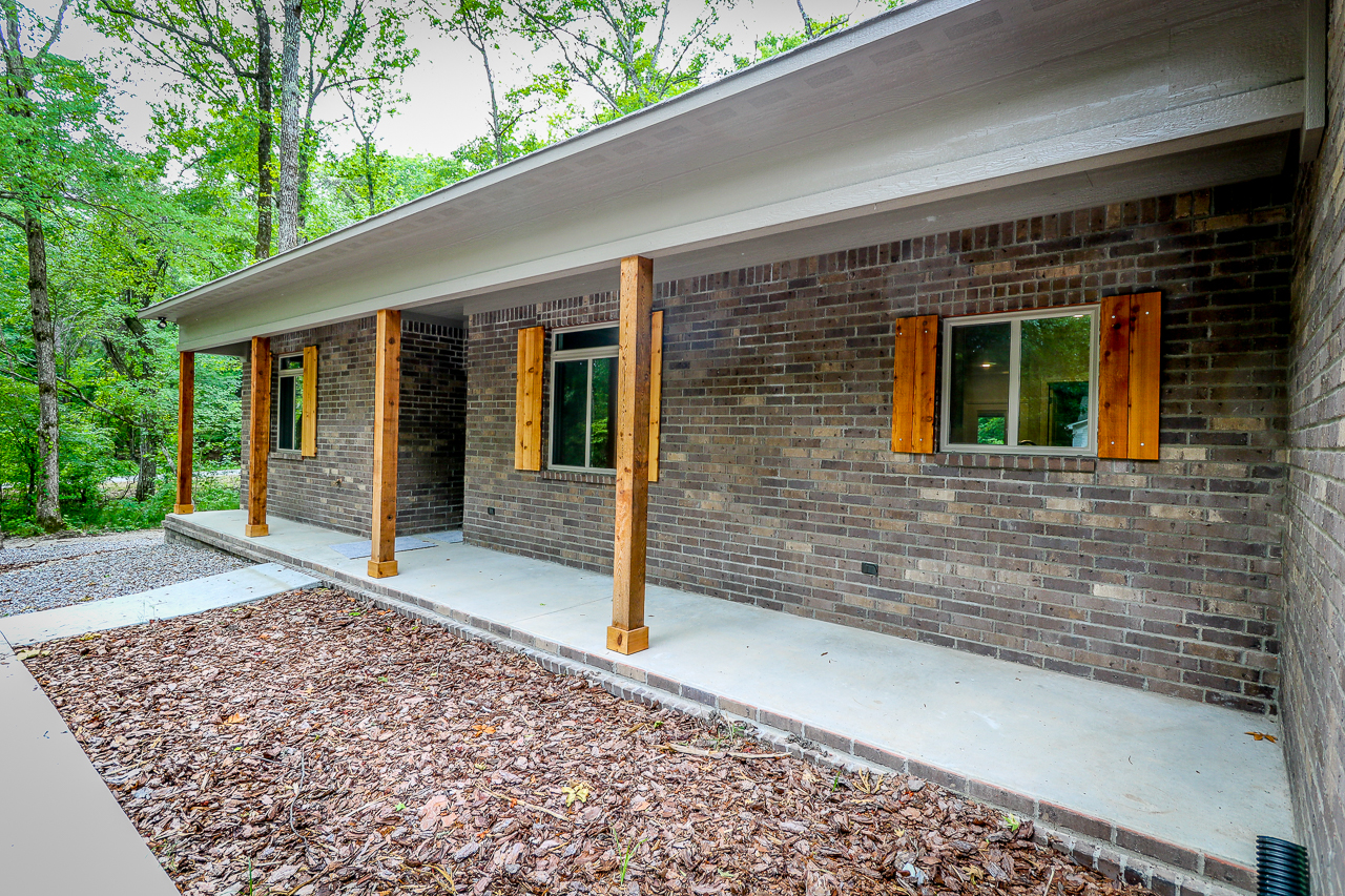 - Exterior Features: Exterior surface: Brick. Architectural shingles, Low-E energy efficient/insulated windows, Slab foundation, Guttering, Patio, Level lot - Cul-de-sac, Resort property, Paved road