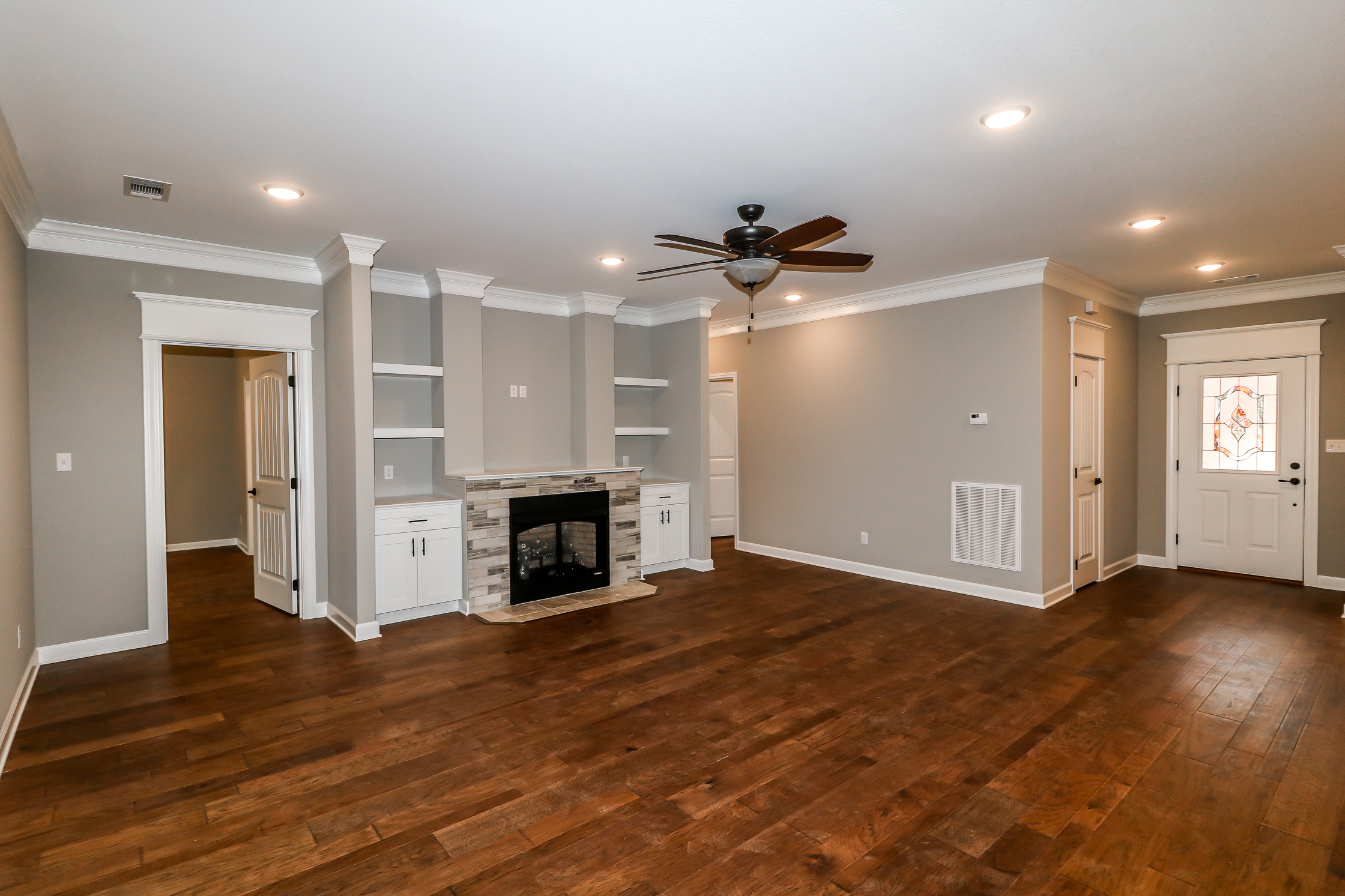 Our photos often demonstrate various stages of the home’s development from preparing the land and foundation through to completion.